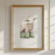 Our charming Lamb Print showcases an adorable watercolor baby lamb in sage green rain boots, bringing the perfect blend of rustic charm and whimsy to any space. Designed for versatility, this print makes a delightful addition to both nursery decor and farmhouse mudroom wall art and makes an adorable gender neutral farm baby shower gift!