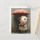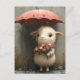 AI generated art of an adorable lamb standing in the rain with an umbrella with hearts and a arm full of flowers