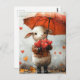 AI generated art of an adorable lamb standing in the rain with an umbrella and a arm full of hearts