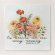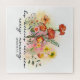 Jigsaw puzzle with inspirational quote scripture depicts a lovely flower garden art design with simple orange, pink and yellow flowers and green leaves, It features Bible Verse Lamentations 3:23, "His mercies are new every morning."