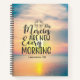 Inspirational quote scripture notebook, journal depicts a beautiful blue, pink and yellow ocean sunrise. It features a portion of Bible Verse Lamentations 3:23, "His mercies are new every morning."