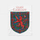Lamont Scottish tartan plaid pattern design for the Lamont Clan Family underneath the red Lion Rampant Shield of Scotland.