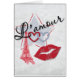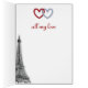 Love with a French twist. Red and blue design with Eiffel tower, star, hearts, and lipstick kiss.