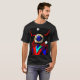 I give wanted to give this a 4 instead of a 5 because these Basic DARK T0shirts run unexpectedly SLIM or Narrow. Which is great if you do not have a potbelly, but I have a paunch. It isn't the shirt's fault that I've got a beer belly. The design and shirt itself is a quality cotton shirt. The color is more of a deep purple, but still a very pretty color. The Basic DARK T-shirts run a bit SLIMMER than the Basic Ts. The neck is a fraction narrower (or seems to be narrower) also. I'm a paunchy middle-aged woman and my neck is 12 inches (31cm) thick and the neckline fell about the same as in the photo of the man, and I had the desire to tug it a bit. So if you're a thick necked man or like loose shirts, be aware these are slimmer shirts. Once I get rid of my lockdown paunch it'll look great. The shirt washed well in cold water with no apparent bleeding. We don't have a dryer, so it hung dry. Did not shrink. Love the colors and the design. The design looks smaller on my shirt than it does on the model on-line. But still, it looks good on the shirt. The printing looks as it does on the model, just the size seems fractionally smaller. Washed garment in cold water, hung dry and design appeared unaffected.