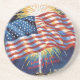 This sandstone coaster proudly displays the American Flag with fireworks in the background. The text states "Land of the free, because of the brave!" as an ode to our troops! Grab a set of these for everyday use or add some special USA flair to your 4th of July party.