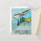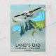 Land's End Cornwall travel flight poster featuring cliffs and rocks on a map of the region in the United Kingdom.
