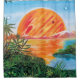 From the 1903 Russian book "Astronomy for Ladies" by Camille Flammarion, this painting in a style reminiscent of Henri Rousseau's primitive tropical paradise scenes, depicts a fictional landscape on Jupiter’s moon Europa with trees and plants, a lake, mountains, planet Jupiter and it’s great red spot, and two of Jupiter's moons in the background.