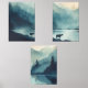 Landscape Painting Set of 3 Wall Art l Blue Green