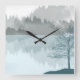 Landscape Reflection Lake Trees Green Square Wall Clock