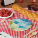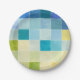 Landscape with Multicolored Pixilated Squares Paper Plate