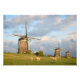 Photo print of three windmills and sheep looking into the camera under beautiful clouds in the sky in a lovely spring landscape in the countryside in the Netherlands.