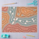 Eine Illustration die auf dem Malstil der australischen Ureinwohner, den Aboriginal, basiert und eine Landschaft vor der Besiedelung darstellt. An illustration based on aboriginal style of dot painting depicting landscape before settlement.