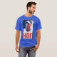 I give wanted to give this a 4 instead of a 5 because these Basic DARK T0shirts run unexpectedly SLIM or Narrow. Which is great if you do not have a potbelly, but I have a paunch. It isn't the shirt's fault that I've got a beer belly. The design and shirt itself is a quality cotton shirt. The color is more of a deep purple, but still a very pretty color. The Basic DARK T-shirts run a bit SLIMMER than the Basic Ts. The neck is a fraction narrower (or seems to be narrower) also. I'm a paunchy middle-aged woman and my neck is 12 inches (31cm) thick and the neckline fell about the same as in the photo of the man, and I had the desire to tug it a bit. So if you're a thick necked man or like loose shirts, be aware these are slimmer shirts. Once I get rid of my lockdown paunch it'll look great. The shirt washed well in cold water with no apparent bleeding. We don't have a dryer, so it hung dry. Did not shrink. Love the colors and the design. The design looks smaller on my shirt than it does on the model on-line. But still, it looks good on the shirt. The printing looks as it does on the model, just the size seems fractionally smaller. Washed garment in cold water, hung dry and design appeared unaffected.