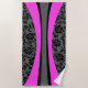 Charcoal Grey, Black and Fuchsia Colorway. Laniakea Beach is a popular surf spot on the North Shore of Oahu, Hawaii. It is known for easy to ride waves and the Hawaiian green sea turtle. Our design is reminiscent of a seventies surfboard or skimboard. We combined competition stripes and a pareau print of hibiscus flowers. This design comes in several colorways.