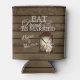 Rustic antique lantern full of daisies and baby's breath over barn wood design. Eat, drink and be married typography style text can holder with the bride and groom's names and wedding date to customise.