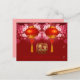 Two traditional lanterns with peach blossoms on red background. Design on horizontal Holidays postcard with date and text to customise. You can easily change text (font, colour, size and position) by clicking the customise button. Available in greeting card and more... Perfect for all Tet Vietnamese New Years.