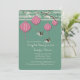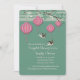 Four, hanging, Chinese paper lanterns are featured hanging from a bamboo branch. Two birds fly over your personalisation in this delightful invitation. Suitable for just about any happy occasion. Want to save money? Print this invitation on the basic, square corner paper.