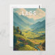 Laos retro vector travel design. From the UNESCO city of Luang Prabang and the spiritual charm of Vientiane to the natural beauty of Kuang Si Falls and the Plain of Jars, Laos offers an authentic blend of nature, history, and tranquility.