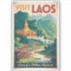Laos retro vector travel design. From the UNESCO city of Luang Prabang and the spiritual charm of Vientiane to the natural beauty of Kuang Si Falls and the Plain of Jars, Laos offers an authentic blend of nature, history, and tranquility.