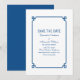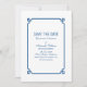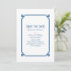 Simple and minimalist Deco Chic Save the Date Announcement with a modern dark blue art deco ornamental border. This classic and elegant save the date invite is easy to customise with your wedding details. Find more personalisation options by clicking Customise.
