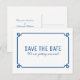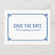 Simple and minimalist Deco Chic Save the Date Postcard with a modern dark blue art deco ornamental border. This classic and elegant save the date postcard is easy to customise with your wedding details. Find more personalisation options by clicking Customise.