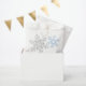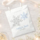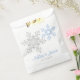 Silver grey, lapis blue, and white snowflakes winter wedding favour bags. Lapis blue and silver coloured bold snowflake design for a winter wedding.