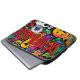 The sleeve is made of nice feeling material and seems very durable. I'm not sure how easy it'll be to clean, but the construction seems sound and the fabric is quick thick. I also like the double zipper. The printing is lovely and appears durable. The white on black contrast is nice, and the design very elegant.