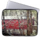 This neoprene laptop sleeve depicts a peaceful snowy red covered bridge to wrap your computer in a bit of wintry nature. A great gift for your loved one on the go whether he or she is a student, a frequent traveller, or a coffee shop teleworker.