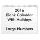 In large 2016 Blank Calendar With Holidays with large numbers you can find customisable text on front page and holidays and events in U.S. and Canada.