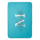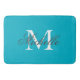 Large aqua turquoise blue bath mat with elegant name monogram. Classy bathroom decor. Elegant taupe brown and white monogrammed design. Stylish script typography with personalised name initial letter. Cute wedding or birthday gift idea for men and women. Pretty chic interior decoration for bath room. Available in small, medium and large big size.
