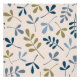 Illustrative surface pattern design of assorted leaf silhouettes in blues and gold colour on a cream colour background.