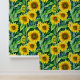 Gorgeous watercolor sunflowers stick and peel wallpaper. Yellow, green and brown floral wallpaper for those who love sunflowers.