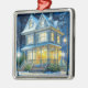 Pretty Victorian House all illuminated on Christmas Eve ornament.