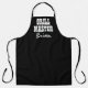 Large black custom grill master BBQ apron for men. Personalised kitchen aprons for guys in any colour. Add your own name or humourous quote. Create your own unique Christmas or Birthday party gift for grill master dad, cooking father, cool husband, friend, grandpa, grandfather, kids, boss, co worker, chef, cook, colleague, son, brother, uncle, chef, cook, restaurant owner etc. Available in small, medium and big size. Humourous design gift for him. Also great for Father's Day! Black and white design.