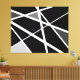 Large black and white modern geometrical abstract art stretched Canvas Print. Available in custom thickness and size. Trendy minimalist wall filler for cool home, gallery, bedroom, kitchen, living room, bathroom, corporate business, company office space, hall way, lounge area, hotel room, reception area, lobby, cafe, bar, restaurant, museum, house, garage etc. Big elegant 40 x 32 inch geometric artwork decorations ( about 120 x 80 cm). Hang above or behind sofa, coach, bed, desk etc. Customisable colours to match any contemporary or luxury interior. Classy decorative design gifts for sale. Customisable sizes to fit any area. Affordable prices.