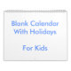 In large blue Blank Calendar With Holidays for kids you can find blue changeable text on front page and United States events and holidays are added too.