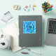 Sticker in a giant, beautiful camellia flower in shades of cobalt blue and turquoise, accented with dark indigo and white