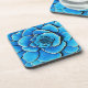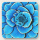 Coaster in a giant, beautiful camellia flower in shades of cobalt blue and turquoise, accented with dark indigo and white