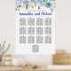 Beautiful blue hydrangeas create an elegant watercolor border at the top of this large 13-Table seating chart. A dash of purple hydrangeas give it depth and creamy white flowers keep it light and airy. Green, leaves and dangling vine, give it just a touch of Boho style. The wedding couple names are written in a bright blue trending script font. This blue floral seating chart is part of the Blue Hydrangea collection that contains signs, programs, menus, place cards and table decor that let you easily and affordably personalise your wedding ceremony and reception. You should see a link to it on this page. If you can' t find the link or need help with an item, please contact me.
