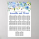 Beautiful blue hydrangeas create an elegant watercolor border at the top of this large 17-Table seating chart. A dash of purple hydrangeas give it depth and creamy white flowers keep it light and airy. Green, leaves and dangling vine, give it just a touch of Boho style. The wedding couple names are written in a bright blue trending script font. This blue floral seating chart is part of the Blue Hydrangea collection that contains signs, programs, menus, place cards and table decor that let you easily and affordably personalise your wedding ceremony and reception. You should see a link to it on this page. If you can' t find the link or need help with an item, please contact me.