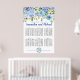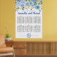 Beautiful blue hydrangeas create an elegant watercolor border at the top of this large 6-Table seating chart. A dash of purple hydrangeas give it depth and creamy white flowers keep it light and airy. Green, leaves and dangling vine, give it just a touch of Boho style. The wedding couple names are written in a bright blue trending script font. The wedding date is featured in a blue hydrangea wreath at the bottom. This blue floral seating chart is part of the Blue Hydrangea collection that contains signs, programs, menus, place cards and table decor that let you easily and affordably personalise your wedding ceremony and reception. You should see a link to it on this page. If you can' t find the link or need help with an item, please contact me.