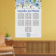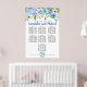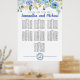 Beautiful blue hydrangeas create an elegant watercolor border at the top of this large 7-Table seating chart. A dash of purple hydrangeas give it depth and creamy white flowers keep it light and airy. Green, leaves and dangling vine, give it just a touch of Boho style. The wedding couple names are written in a bright blue trending script font. The wedding date is featured in a blue hydrangea wreath at the bottom. This blue floral seating chart is part of the Blue Hydrangea collection that contains signs, programs, menus, place cards and table decor that let you easily and affordably personalise your wedding ceremony and reception. You should see a link to it on this page. If you can' t find the link or need help with an item, please contact me.