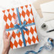 A wrapping paper designed with a bright orange and white harlequin pattern in large size. You can change the white for a different colour in an easy way.