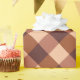 Large scale modern take on a classic gingham plaid wrapping paper in dark and medium chocolate / cocoa brown, deep camel tan and pale buff pink