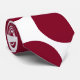 This striking tie features a pattern of large burgundy polka dots on a white background. A necktie choice for the bold and original!