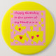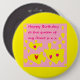 Large button badge with birthday greetings loving message for a daughter wife fiance girlfriend mother---pink and yellow as seen