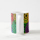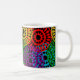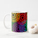 This mug has a Black History design of large circles formed from raindrop shapes and circles in red, yellow, purple, green, and turquoise.
