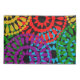 This pillowcase has a Black History design of large circles formed from raindrop shapes and circles in red, yellow, purple, green, and turquoise.