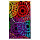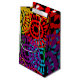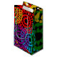 This gift bag has a Black History design of large circles formed from raindrop shapes and circles in red, yellow, purple, green, and turquoise.