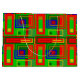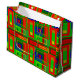 Large colourful glossy Christmas gift bag with red, green, gold and blue.